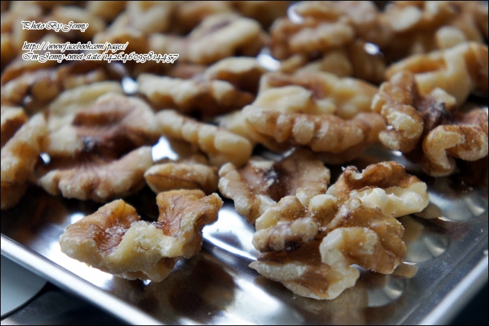 〈1〉將生核桃放進150℃的烤箱烘烤約8分鐘。