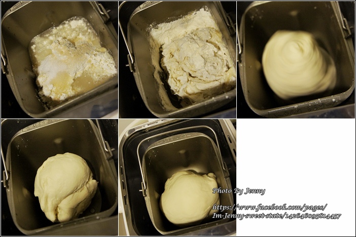 ▲step〈1〉材料全部放進麵包機(Zojirushi BB-HB10),基本發酵時程1小時45分鐘 (含攪拌) 麵糰變二倍大即可。
