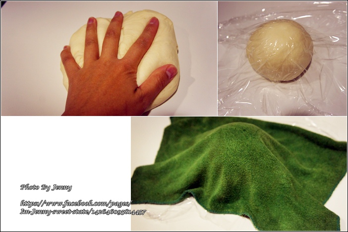▲step〈2〉麵糰中的空氣用手壓下去擠出來後滾圓,鋪上一層保鮮膜以防乾燥,再蓋上擰乾的濕布鬆弛10分鐘。