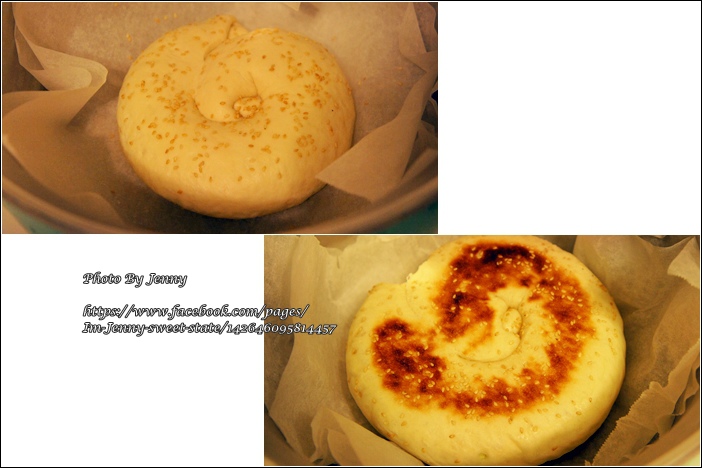 麵糰噴些水撒上芝麻第二次發酵30分鐘。(放入電鍋前底層平鋪烘焙紙,不能插電喔!)