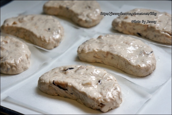 〈5〉手抹少許食用油,各取約115g~120g塑型成半月型,放置在小張烘焙紙(或粽葉)上,並於表面塗上少許油。